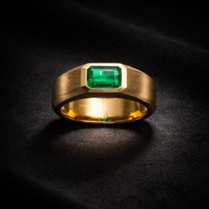 A single Muzo emerald. Bezel-set in brushed 18K gold. Sourced directly from Colombia’s most storied mining region and certified for origin.